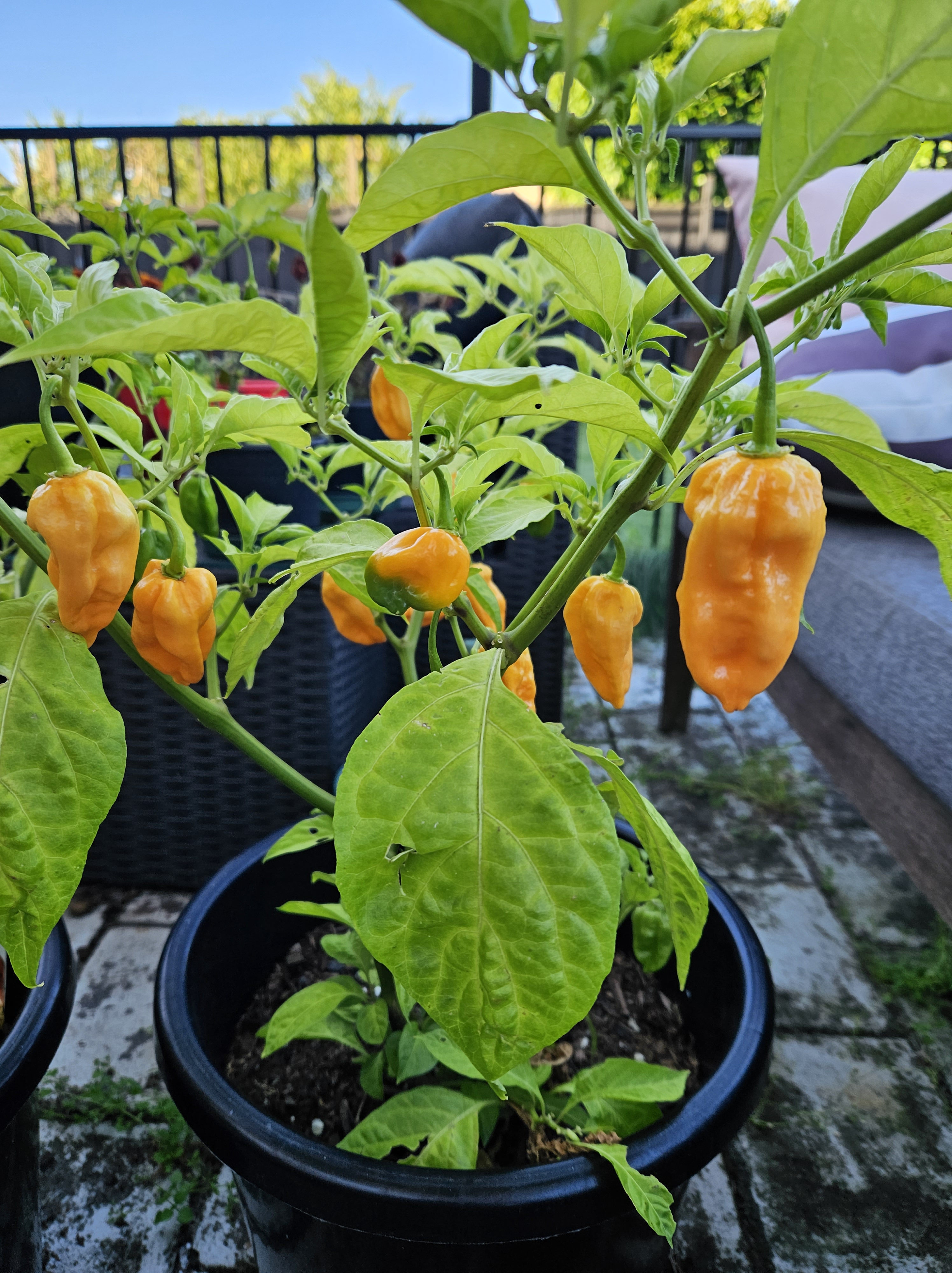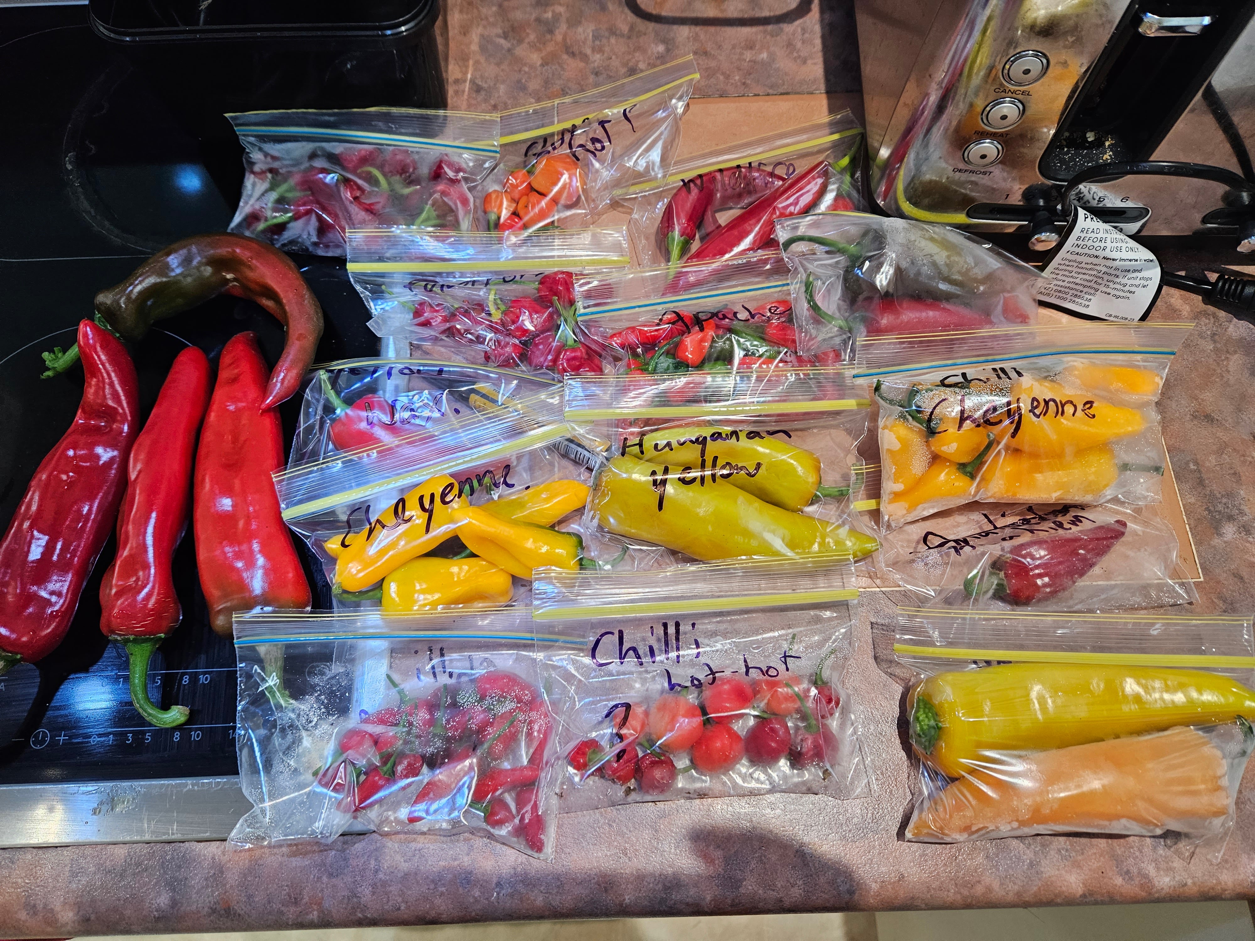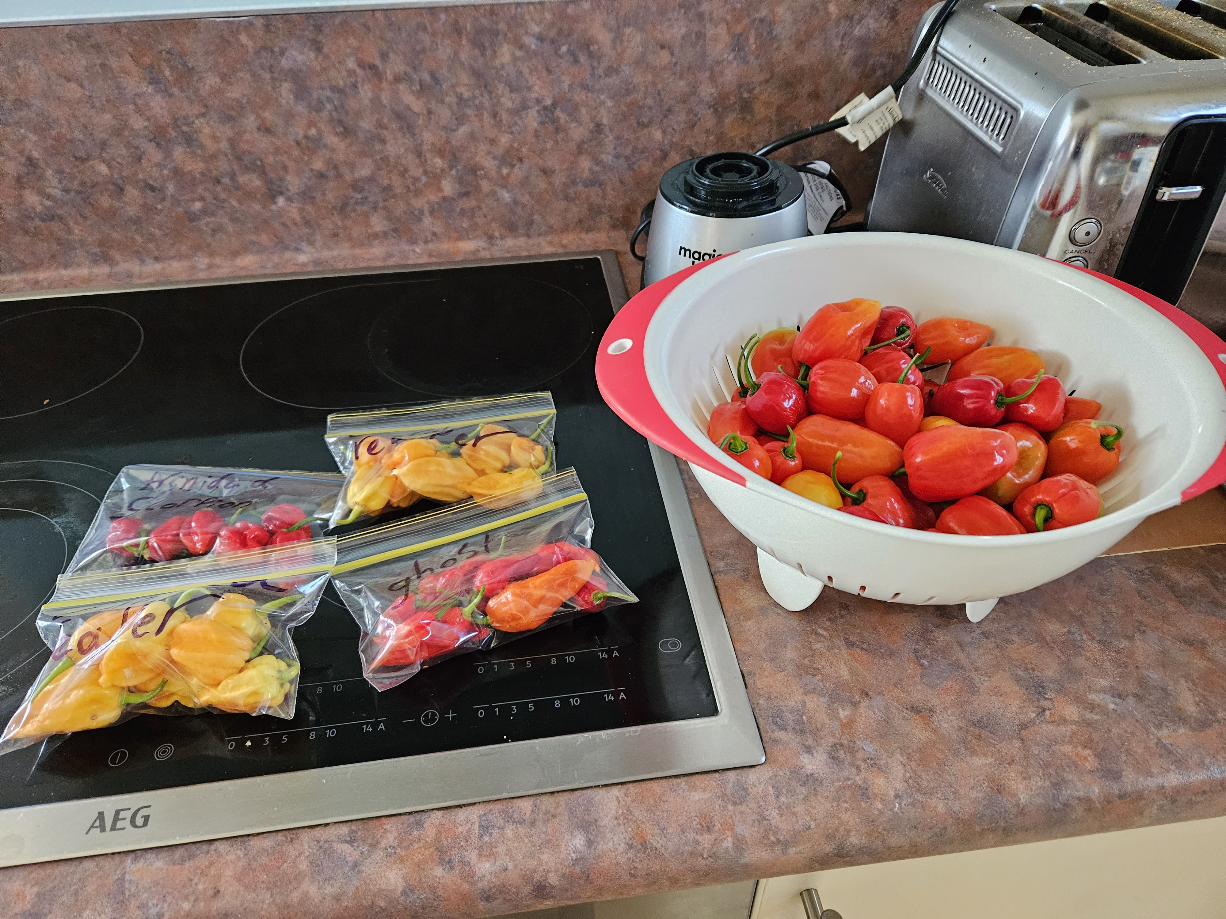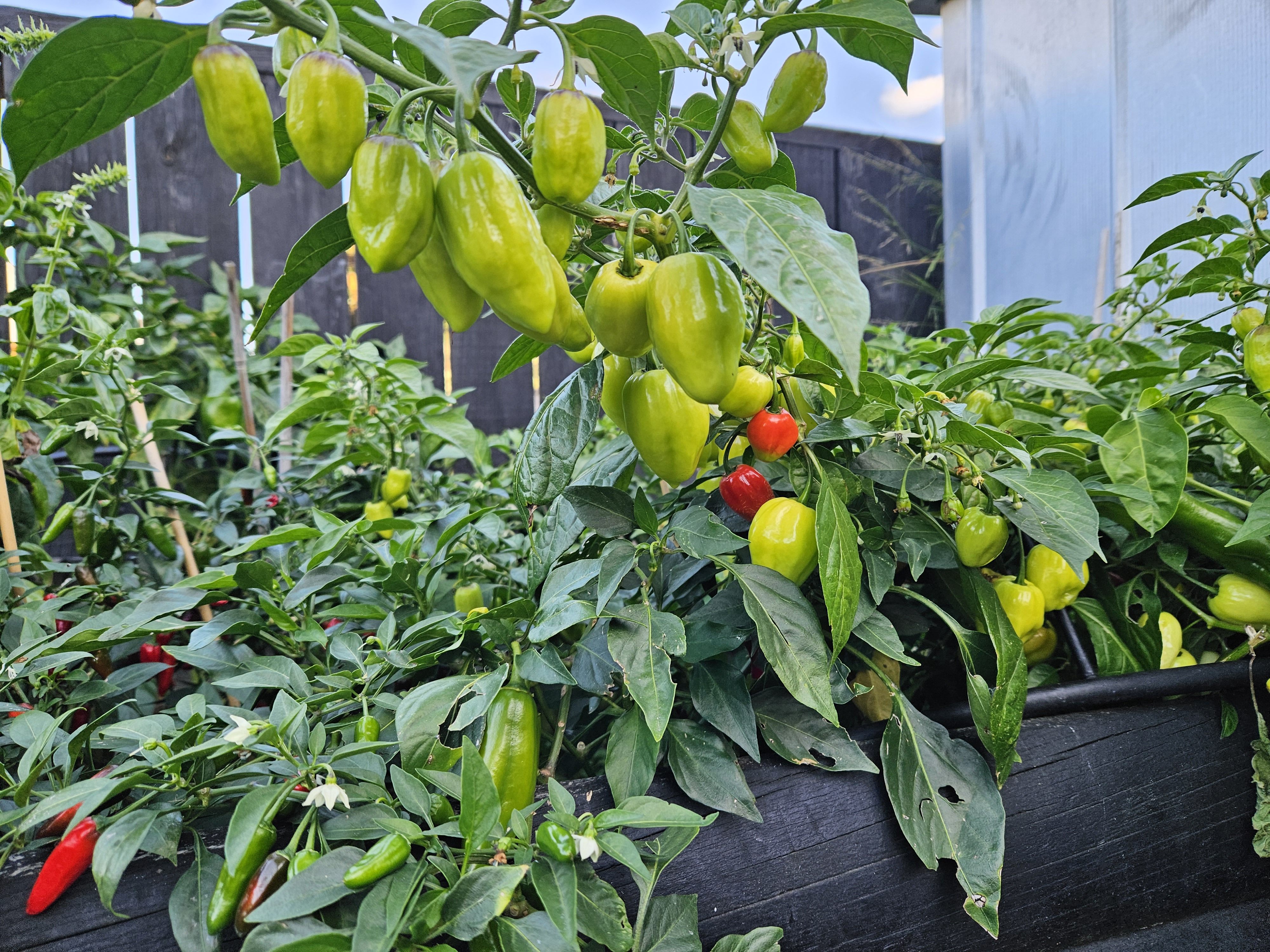 Anaheim, Padron, Apache, Habanero, Serrano, Cheyenne, Hungarian Yellow, Wildfire, Ghost, Trinidad Scorpion, Carolina Reaper, Yellow Wax. I was also supposed to have Jalapeno, but didn’t have much luck, and the Cayenne ended up being capsicums—still a great year. Plenty of marigolds too to keep the pests away from the chillis.