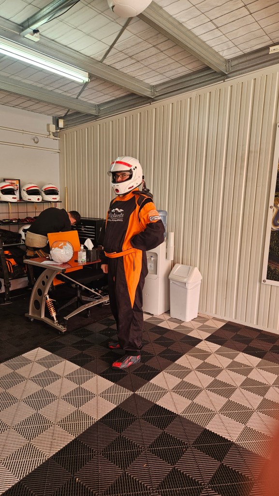 After lunch we headed up to the u-drive facilities, where we got suited up in our race gear, had a briefing about not spinning out or being a dick. And then one by one in with the pro driver and off for laps, the car was awesome, I have no idea on what speed we were going, but it felt pretty fast to me. The pro driver encouraging me to go faster. Started off quite nervous but excited and was able to get the hang of it, and more comfortable by about lap 5, but only 7 laps each.