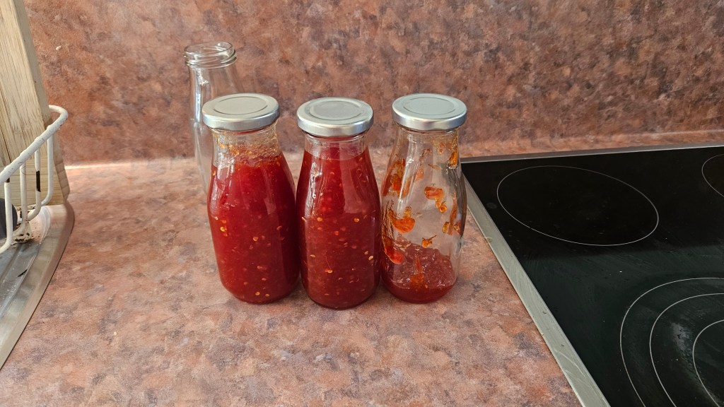 To prepare, combine all ingredients and boil for 30 minutes. Then, use a stick blender to blend the mixture. Next, return the mixture to the heat and simmer for 30-60 minutes, until it reaches your desired thickness. Finally, carefully pour the mixture into sterilized containers.